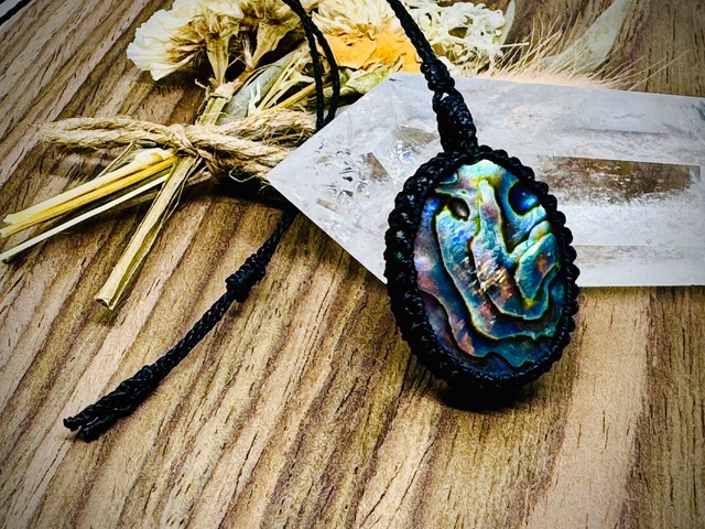 ■素材■ ・アバロンシェル天然石 ・サイズ 約23mm×17mm×6mm ・蝋引き紐(ワックスコード) ■大きさ■ トップ部分 約34mm×20mm×8mm + 長さ 約100cm (長さ調整可) ★購入時の注意点★ ■ご注文後のキャンセル、 交換はお受け致しておりません。 予めご了承下さい。 また、転売はご遠慮下さい。 ■モニターを通しての色と 実物は若干の違いがある可能性がございます。 ■ハンドメイド商品です。 制作時に出来る多少の歪みや細かな傷などが ある場合がございます。 また素材の大きさや作り方によって 表記と多少のサイズ誤差が生じる場合がございます。 ■天然の素材や、 ヴィンテージパーツを使用しております。 素材特有の細かい傷があったり、 色が均等でなかったりする場合があります。 また天然石の種類によっては、 内包物やひびなどがあるものもございます。 ご了承ください。 ■マクラメの作品は 蝋引き紐(ワックスコード)を使って 制作しております。 使い始めはベタつきがございますが 経年によりこなれてまいります。 また、焼き留めや接着固定の 跡がございます。 ■フルオーダーメイドはお受付しておりません。 ■ギフトラッピングサービスは行ってありません。 簡易包装のご対応となります。 ■何かあれば、ご購入前に ご相談頂ますようお願い致します。